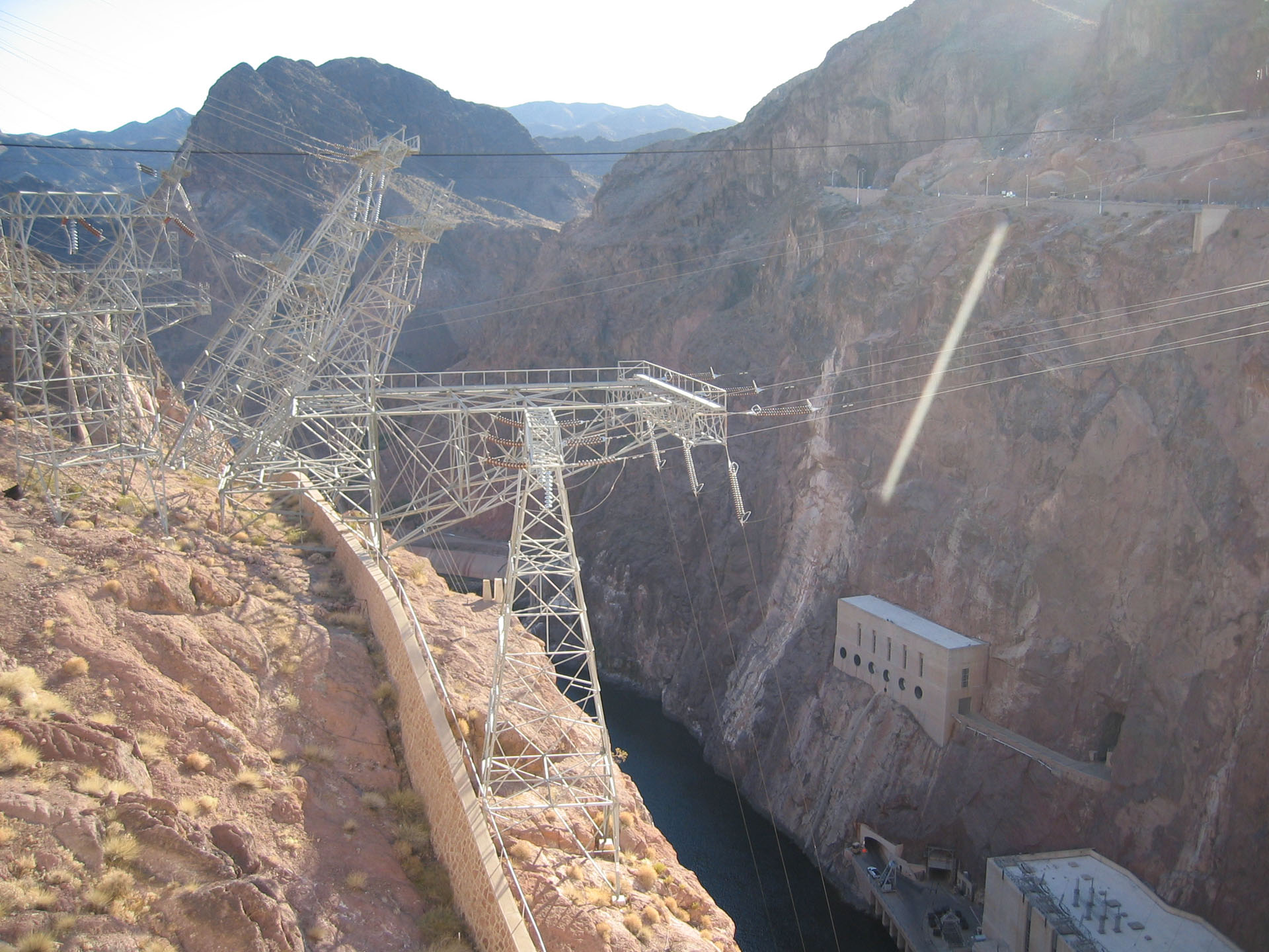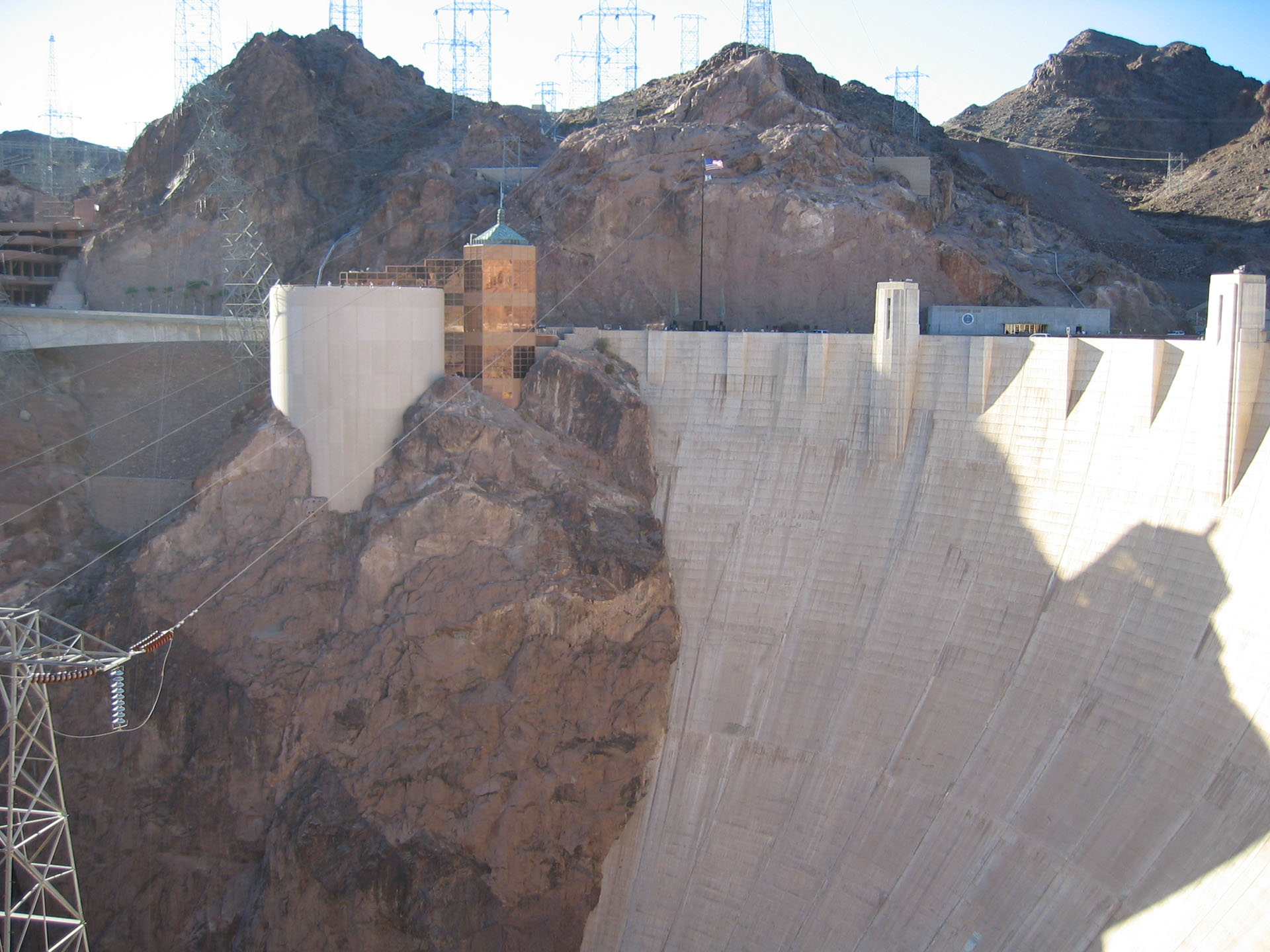 Gegen 15:30 Uhr verlassen wir Las Vegas Richtung Hoover Dam, wo wir nach ca. einer Stunde Fahrt ankommen. Hier ist es noch wärmer als ins Las Vegas und es weht ein richtig warmer Wind. In der Mitte des Damms verläuft die Grenze zwischen Nevada und Arizona und mit überschreiten dieser, wechselt man auch in eine andere Zeitzone.
