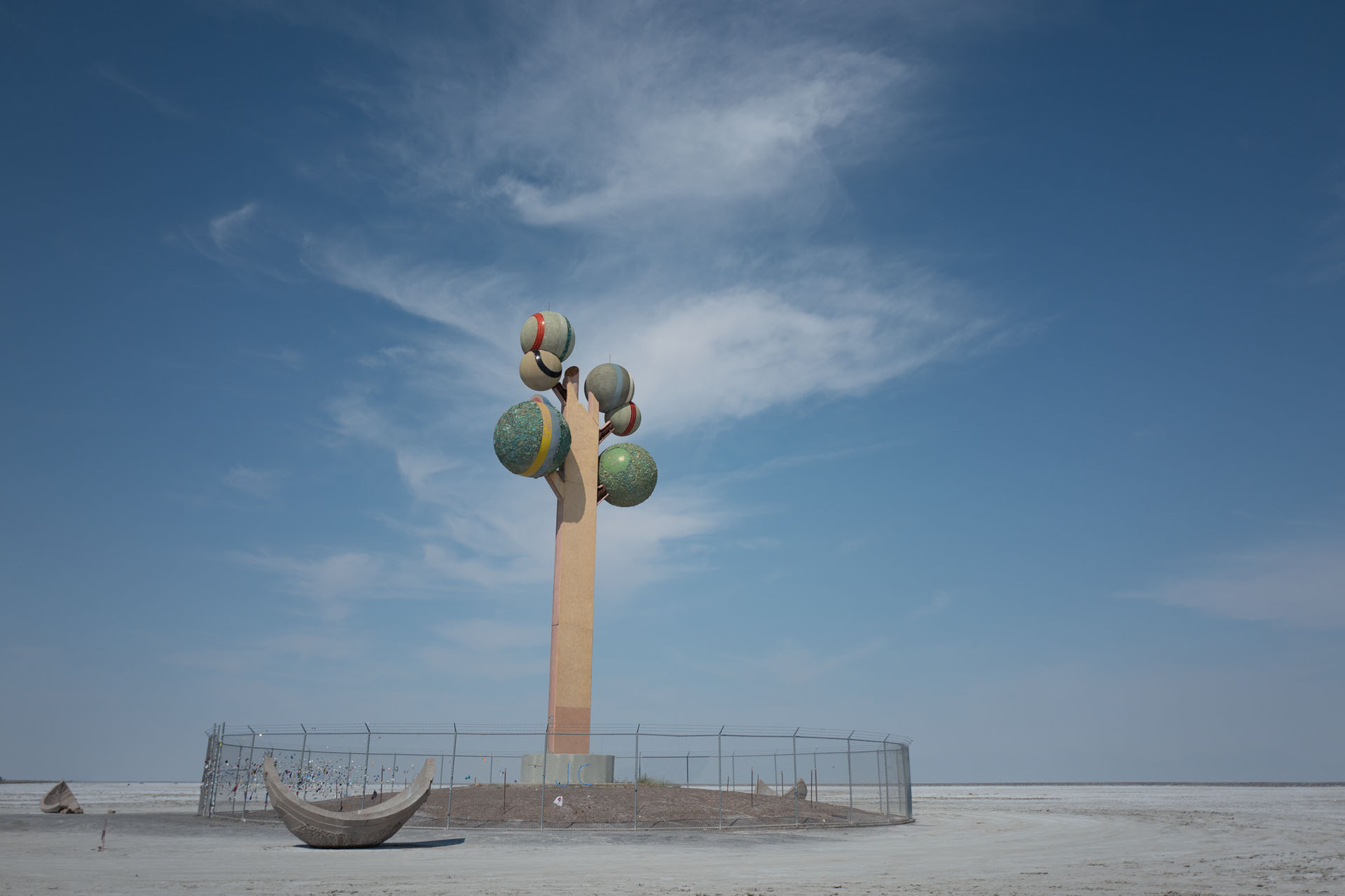 Am Ende haben wir uns entschieden, es zu tun und ich kann vorwegnehmen, es war einzigartig und hat sich für uns gelohnt. Also Tempomat an und los. Achso, eine Kleinigkeit gibt es unterwegs doch noch zu sehen. "The tree of Utah": eine Skulptur, die 1986 errichtet wurde um etwas Farbe in die karge Salzwüste zu bringen.